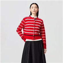 朗姿服饰2026春节复古羊毛条纹短针织开衫