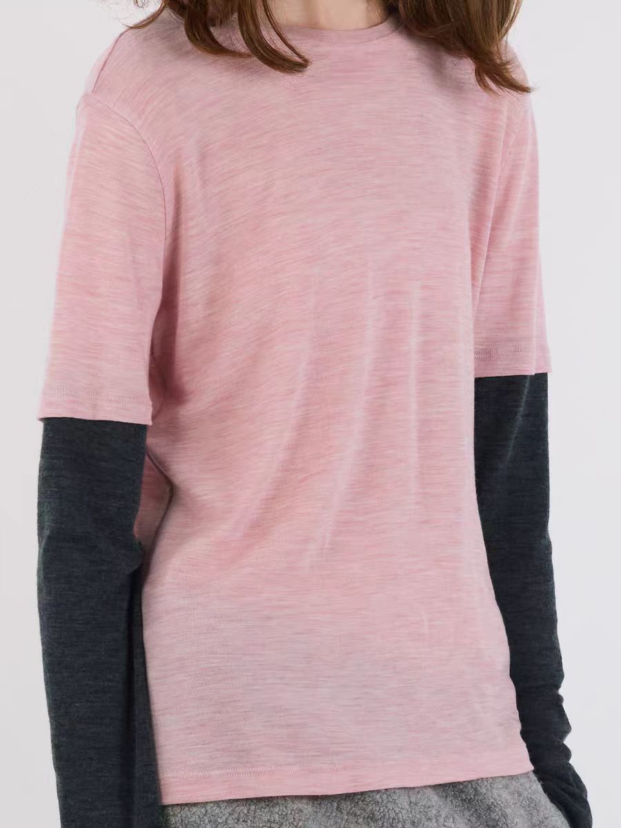 | 薇薏蔻IIIVIVINIKO2025冬新款绵羊毛撞色拼接假两件针织衫 | |||