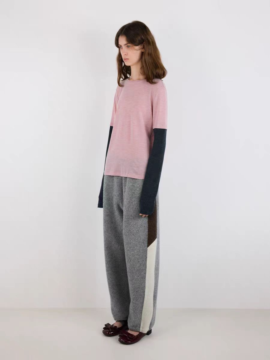薇薏蔻IIIVIVINIKO2025冬新款绵羊毛撞色拼接假两件针织衫 |