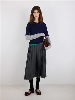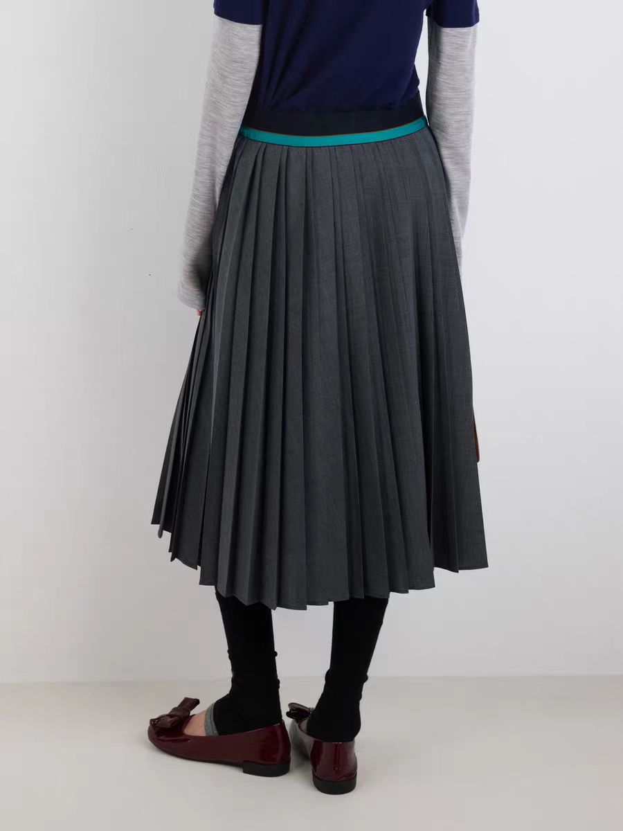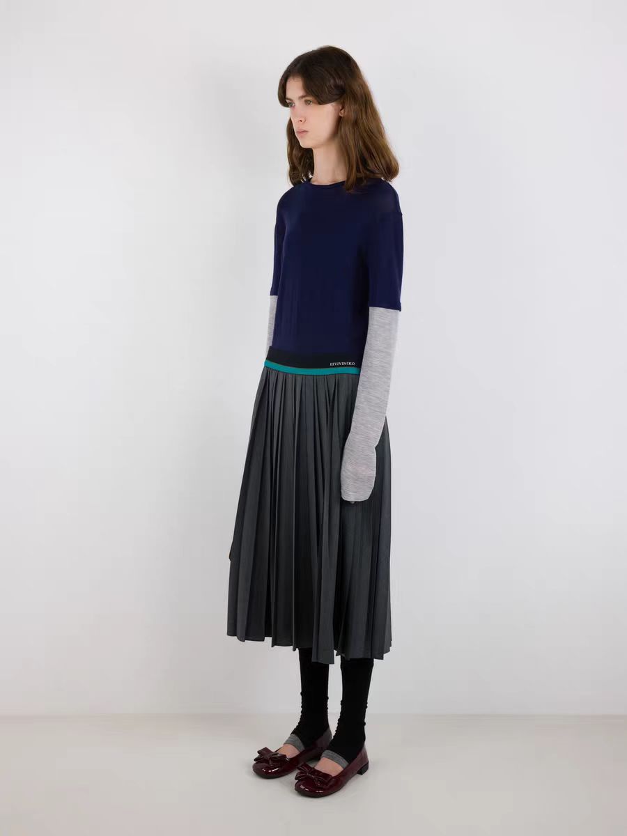 薇薏蔻IIIVIVINIKO2025秋新款时尚学院风撞色腰头百褶裙 |