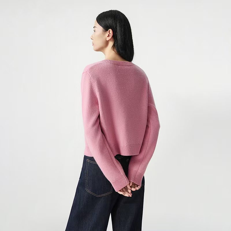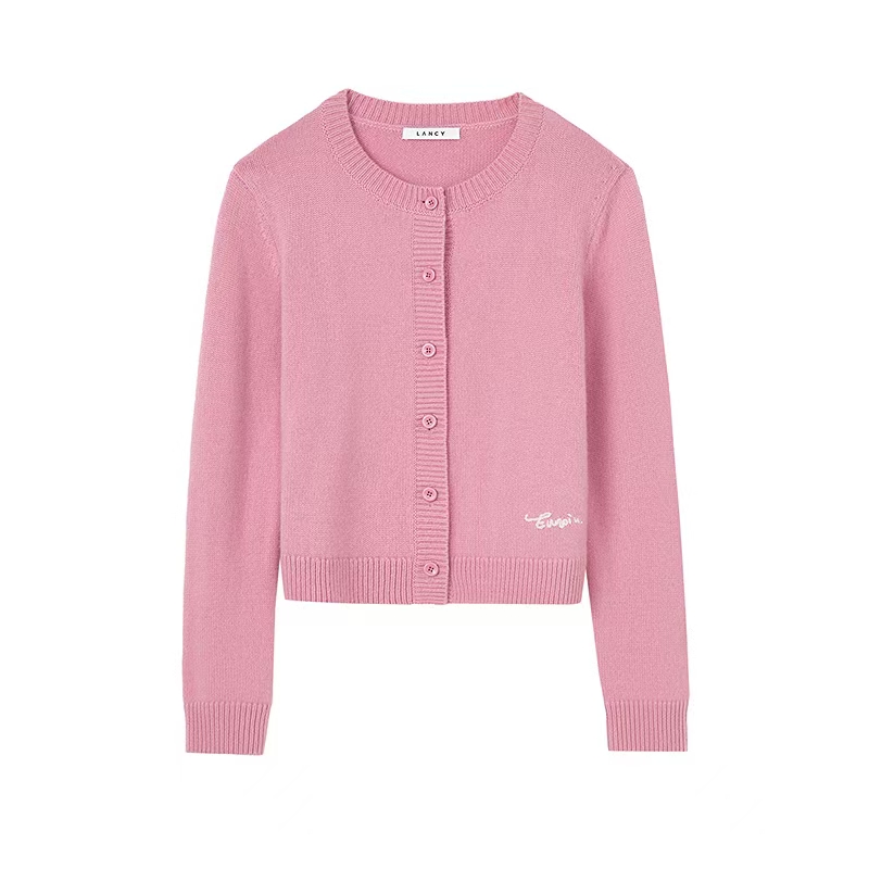 朗姿圆领气质优雅短款针织开衫