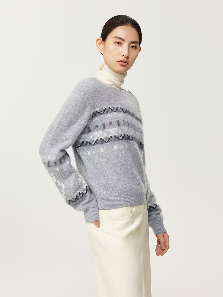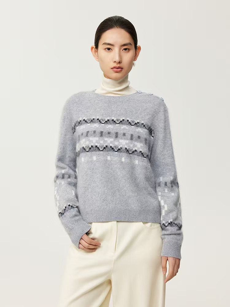 | 鄂尔多斯1980拉绒圆领虚提女套衫 | |||