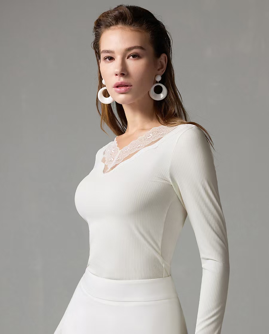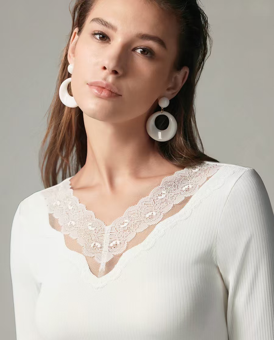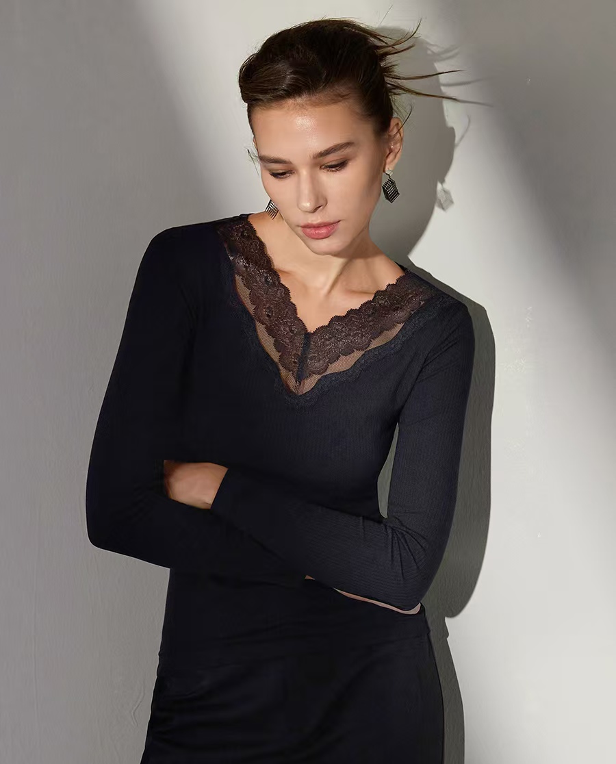 爱慕24AW简韵V领长袖上衣莫代尔AM72A032 |