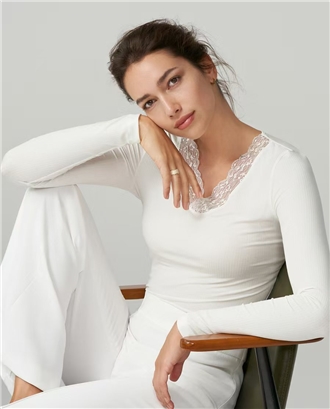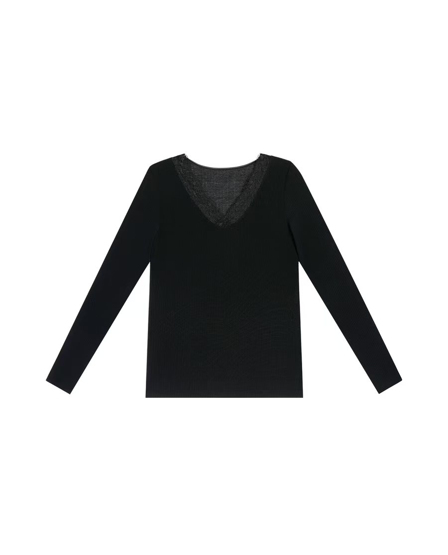 >>爱慕螺纹暖柔V领长袖上衣打底AM728822