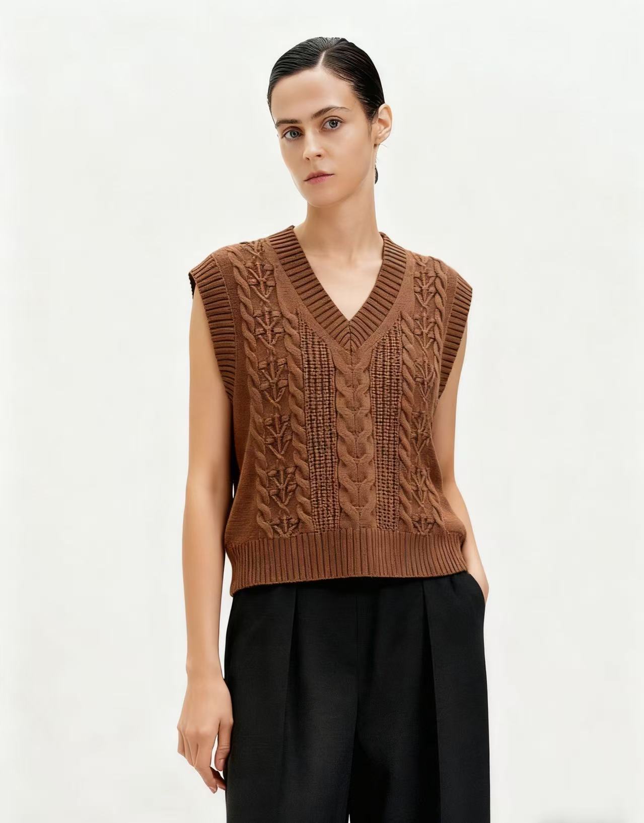 >>【双十一特供】Re-BLUE落日棕绞花针织背心