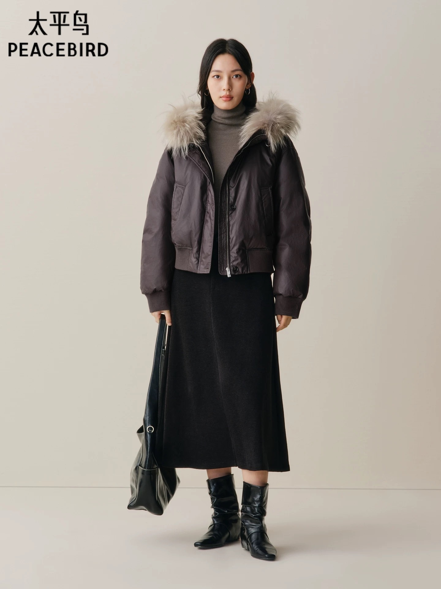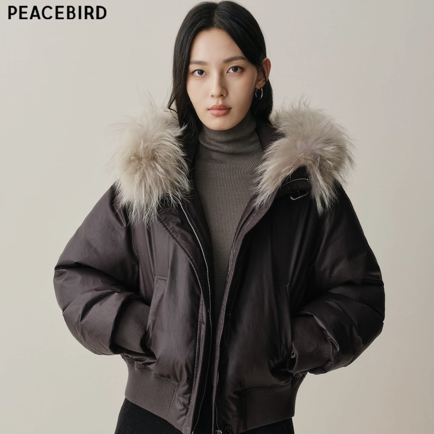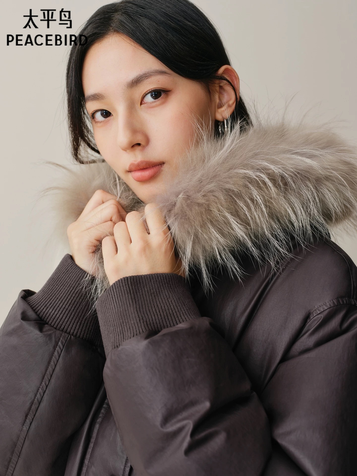 >>太平鸟可拆卸貉子毛领羽绒服