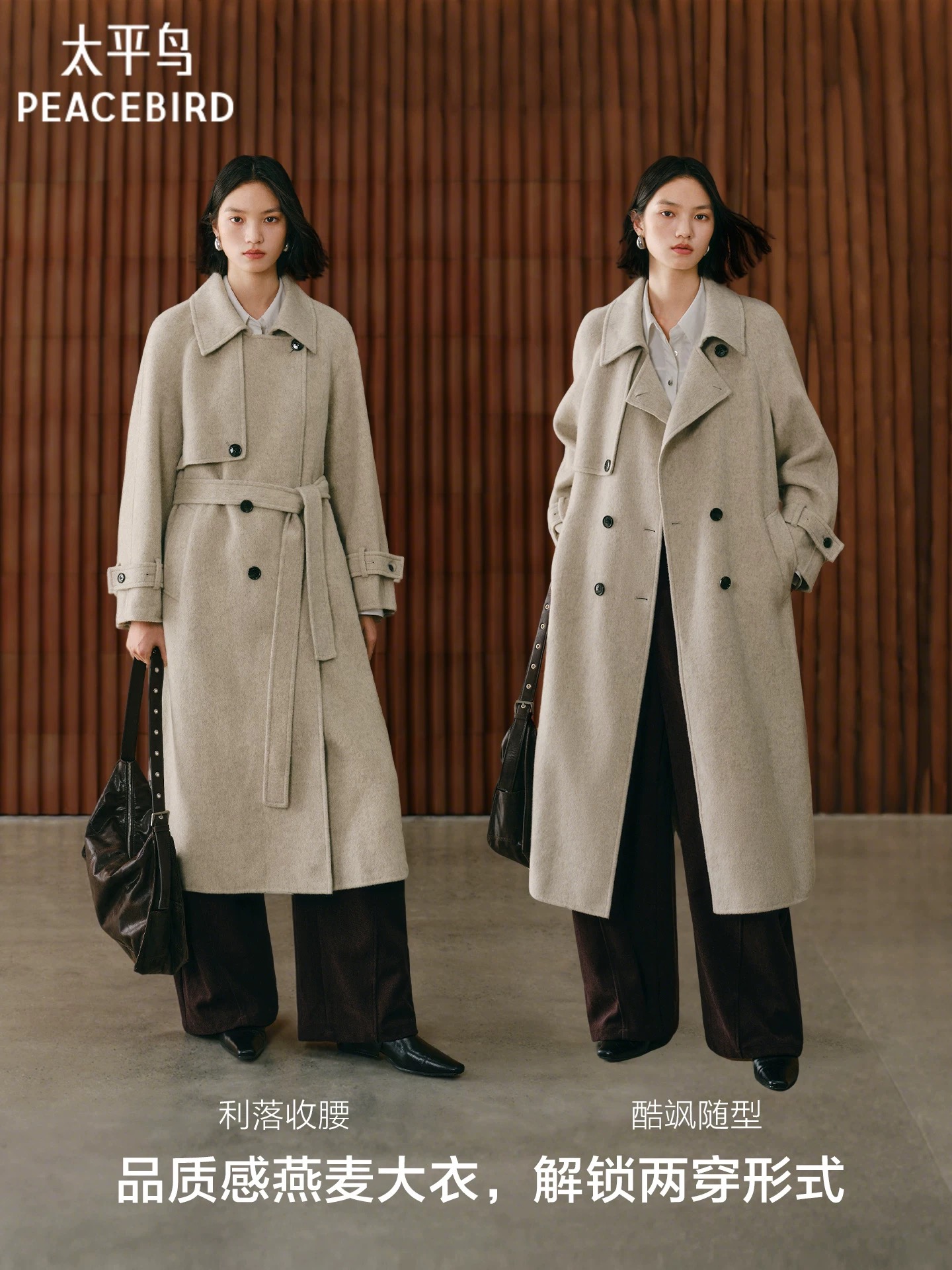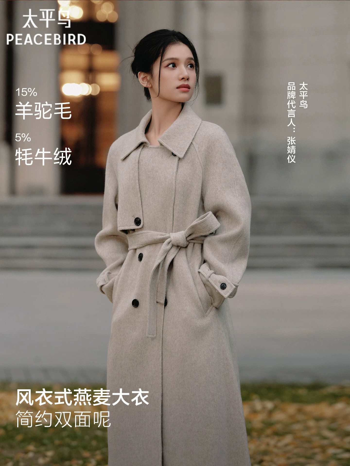 >>【张婧怡同款】太平鸟甄绒系列燕麦驼绒双面呢大衣