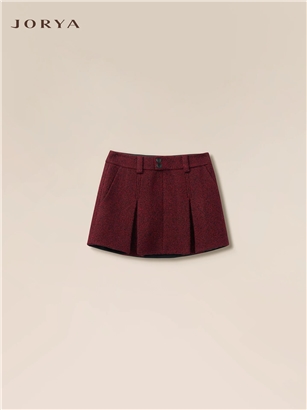 >>JORYA25冬季新款圣诞新年红气质毛呢A字裙