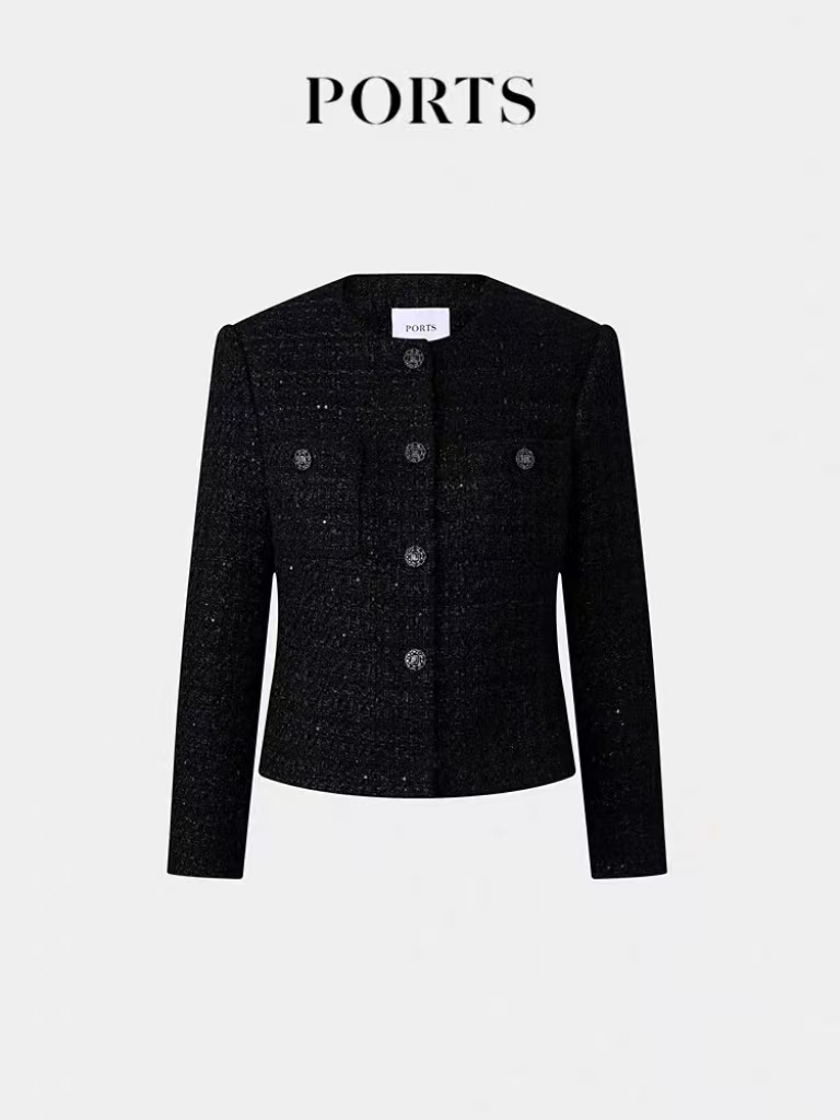 >>宝姿 (优雅花纱肌理闪片花呢外套)