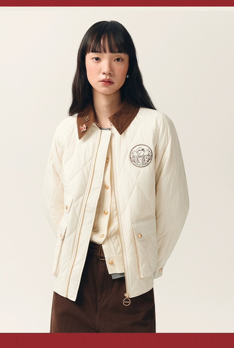 TeenieWeenie小熊女装棉服26年春季新款菱形格撞色灯芯绒翻领外套