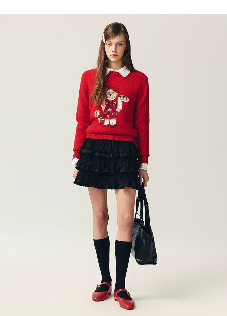 TeenieWeenie小熊女装毛针织衫26春新款新年氛围大熊提花圆领毛衣