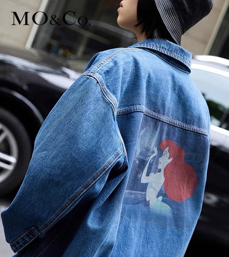 MOCO秋装新款小美人鱼印花宽松衬衫式牛仔外套