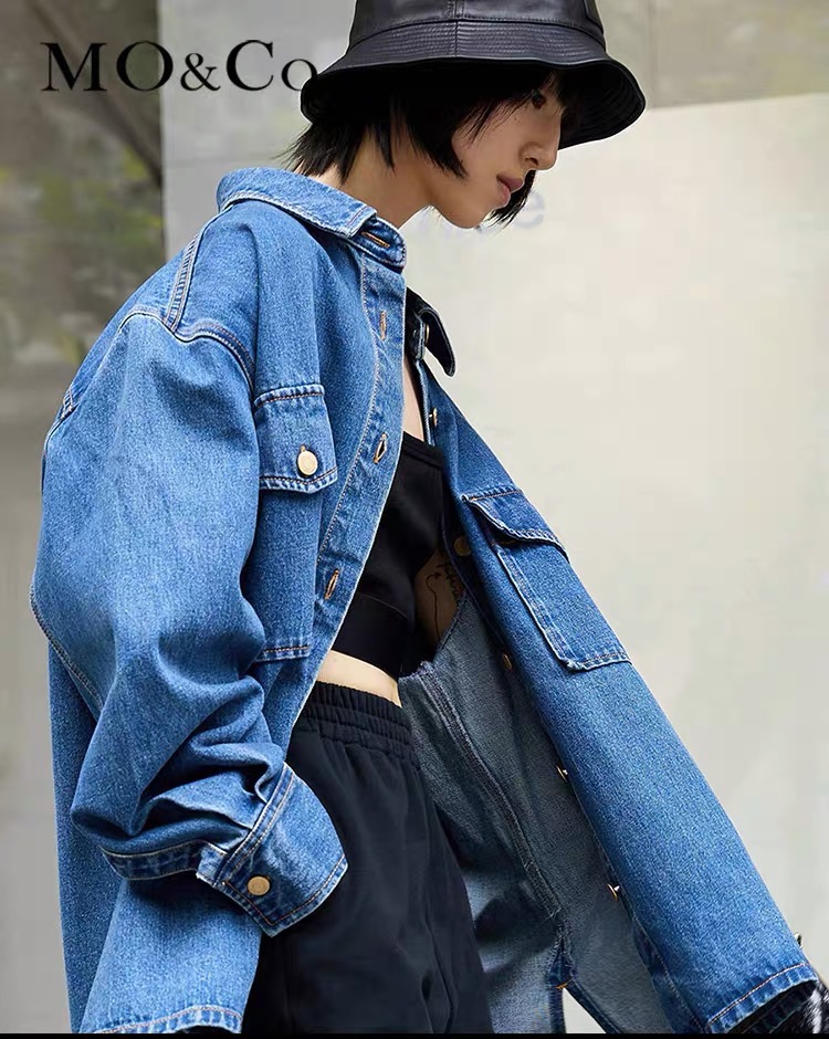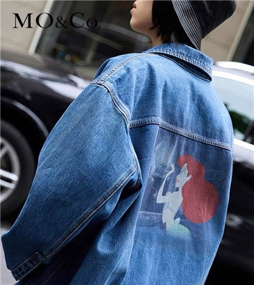 >>MOCO秋装新款小美人鱼印花宽松衬衫式牛仔外套