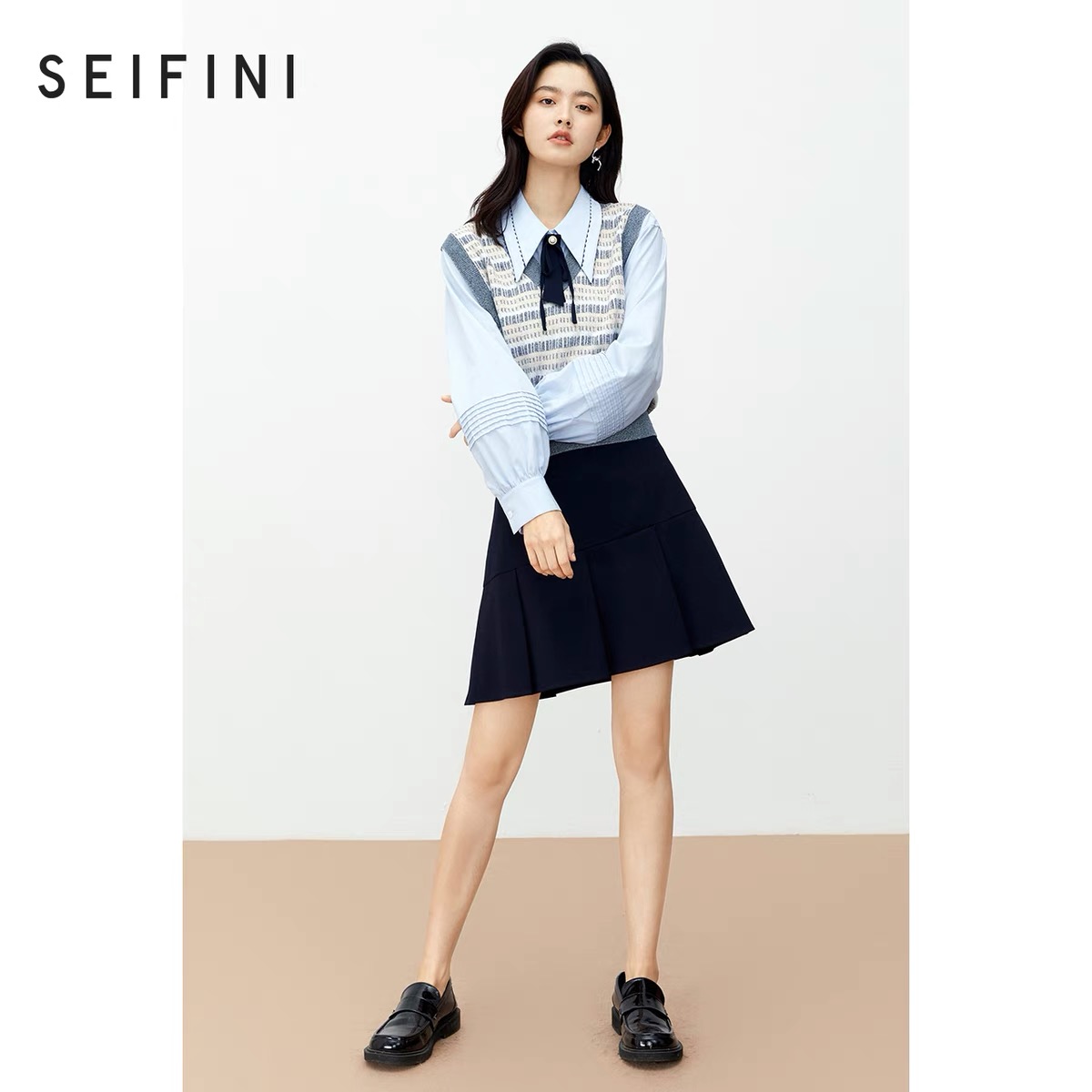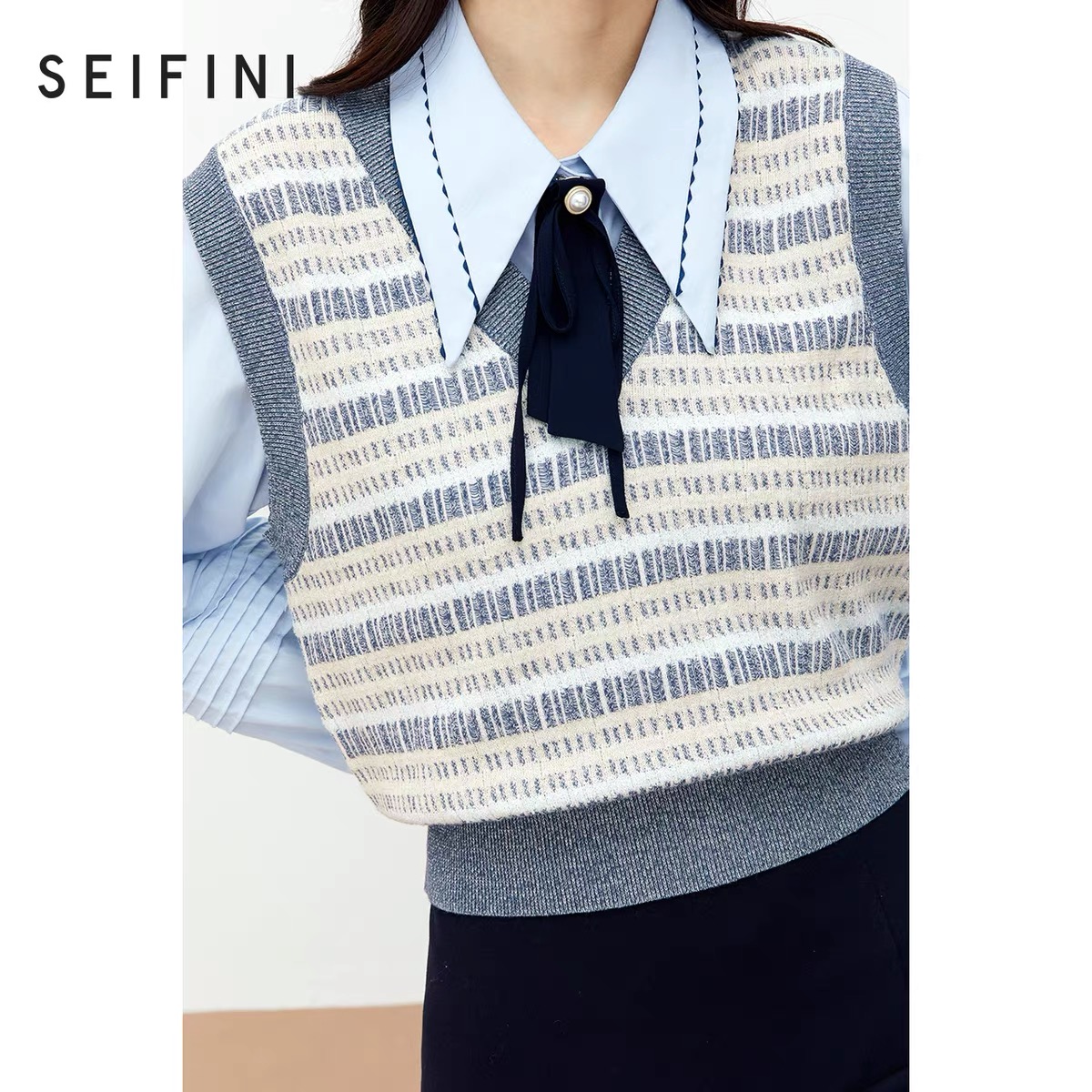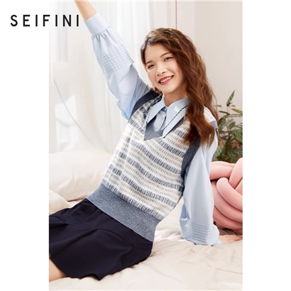 诗凡黎2021秋装V领气质马甲上衣