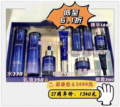 >>兰芝致美青春多效护肤套装额外加赠正价270元面霜(相当于4.7折)