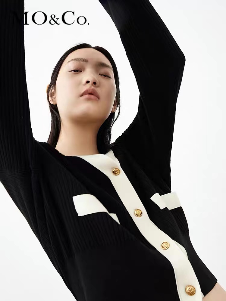 MO&CO2021新品金扣装饰短款针织衫JK服