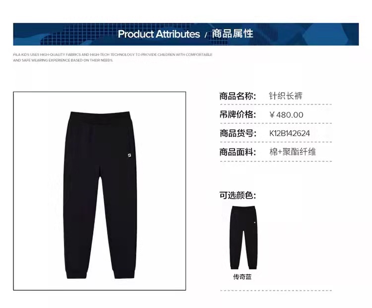>>FILA-kids中大童裤子