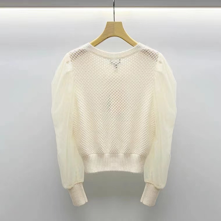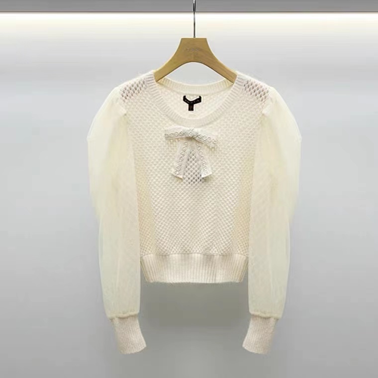 淑女装>>JORYA卓雅2021冬季新款毛衣网纱袖蝴蝶结针织衫上衣