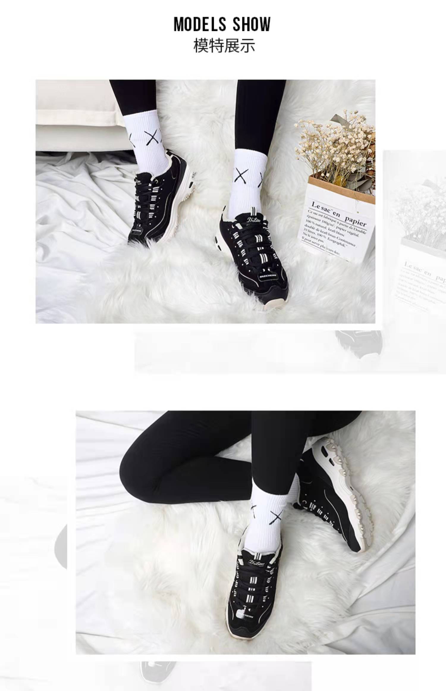 >>斯凯奇冬季女款加绒保暖厚底熊猫鞋