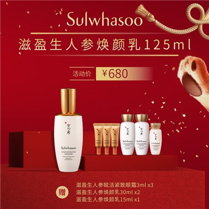 >>雪花秀滋盈生人参焕颜乳125ml(送价值1220的赠品)