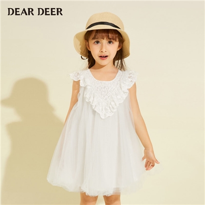 >>迪迪鹿迪迪鹿2020女小童净色纯白连衣裙