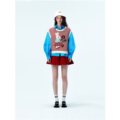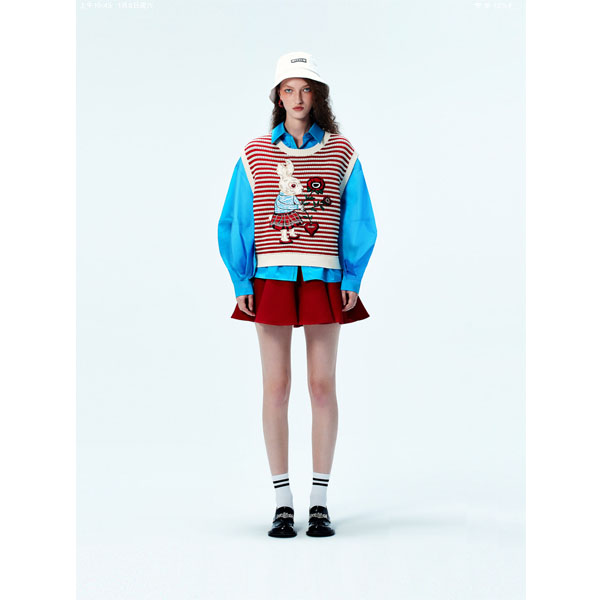 卓雅2022春款圆领无袖兔子刺绣马甲针织衫