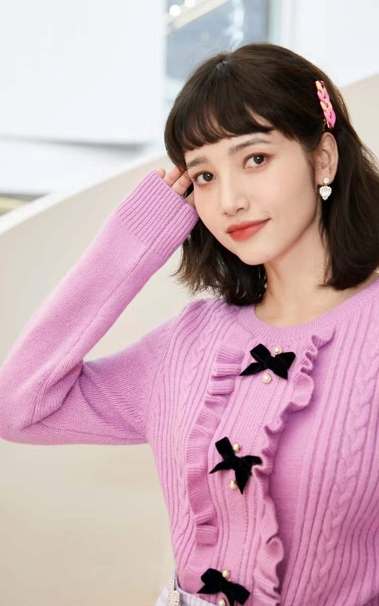 >>五折!VEROMODA少女蝴蝶结圆领木耳边针织衫