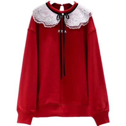 淑女装>>JORYA2021冬季新款娃娃领长袖蝴蝶结加绒宽松套头卫衣