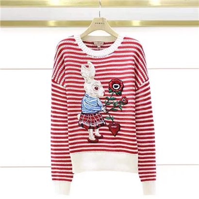 2022春新款专柜正品圆领兔子绣花气质针织衫