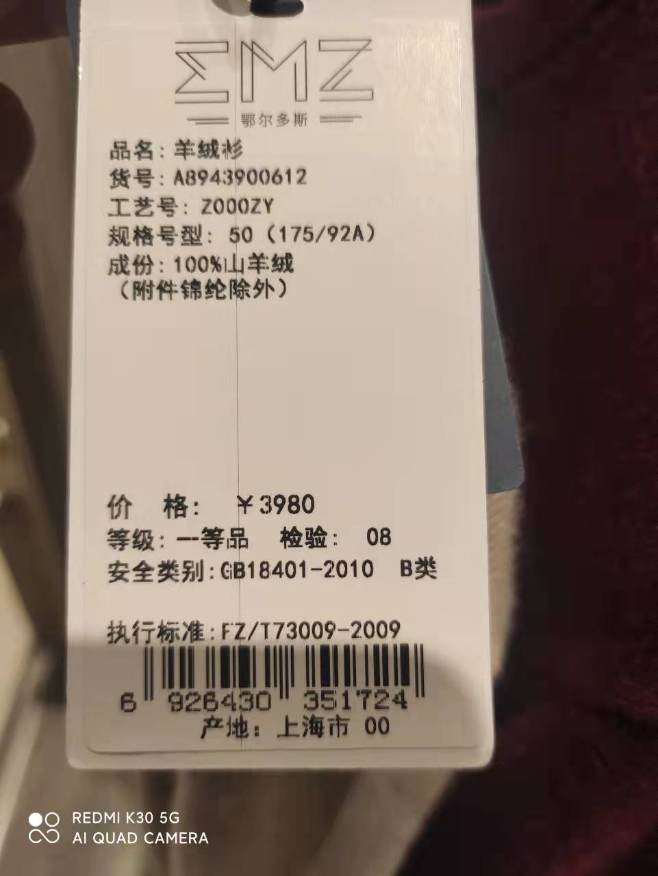 EMZ鄂尔多斯羊绒衫手感丰满细腻,像婴儿般肌肤柔软,上身后非常轻,保暖度特别好,您值得拥有