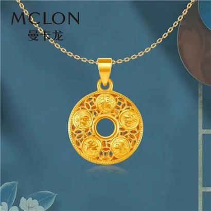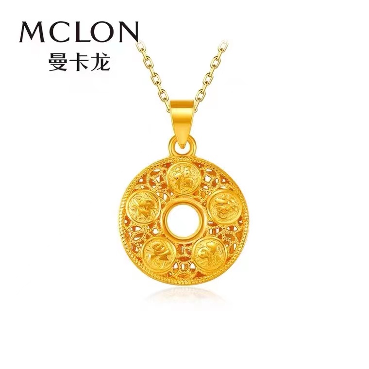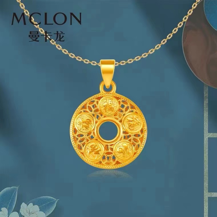 铜钱环绕小小一枚平安扣 镂空设计精致细腻 融合传统祝福 寓意福气绵延不绝 晓芳圆满