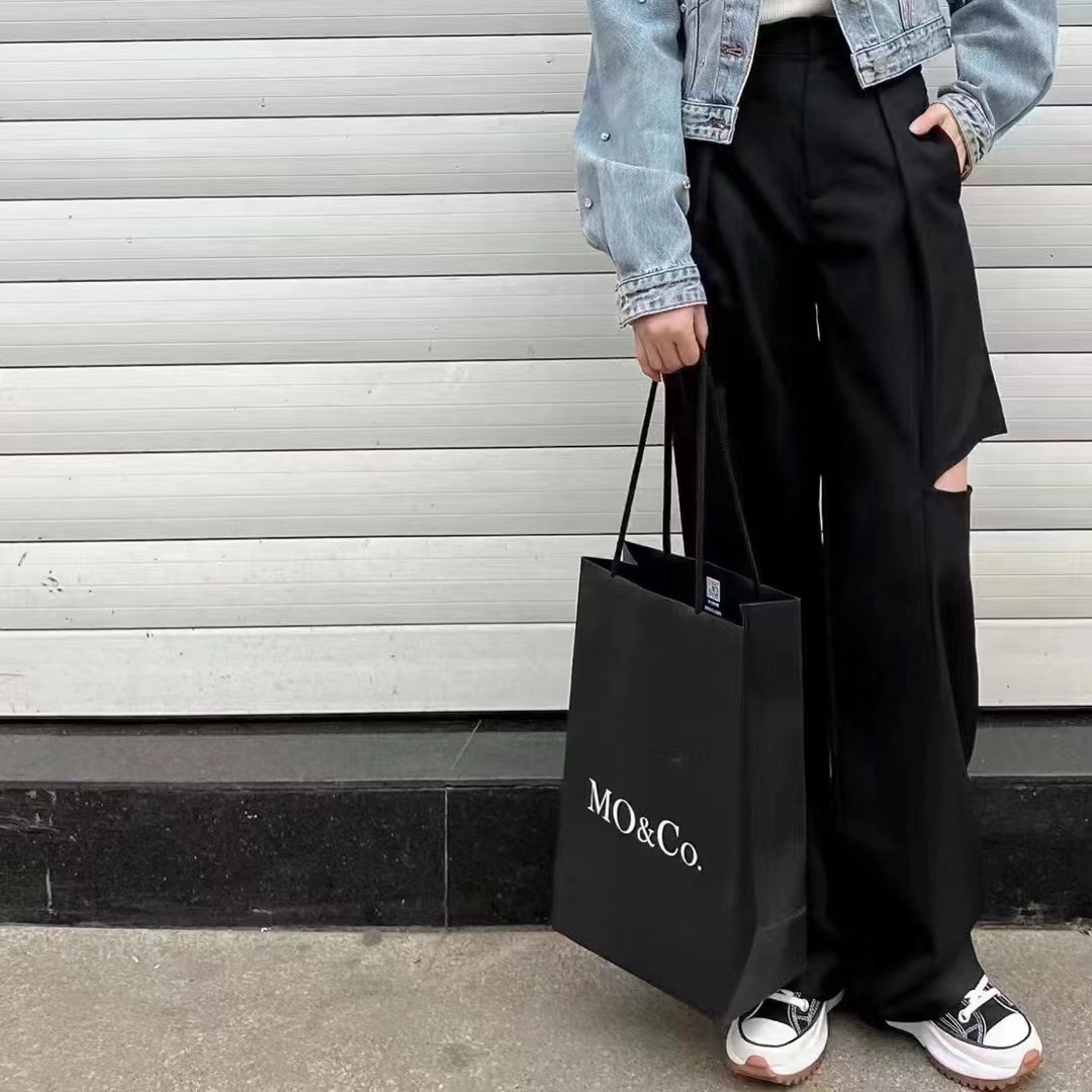 >>MO&CO2022春季新品设计感剪口高腰休闲裤
