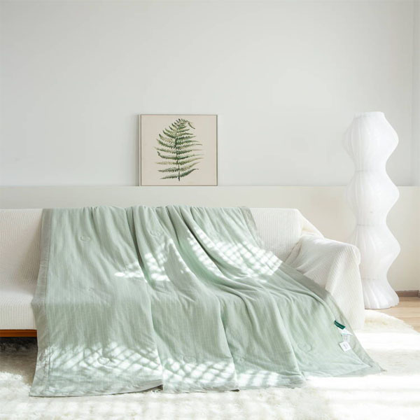 品名:色织格调大豆纤维夏凉被(藕粉,浅绿)二色可选 规格:200*230cm 面料:100%棉 填充物:80%聚酯纤维20%大豆纤维 填充量:100g/m2