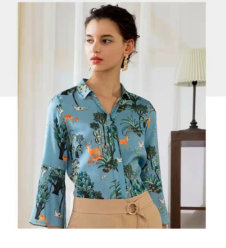 >>鹿王真丝长袖衬衫