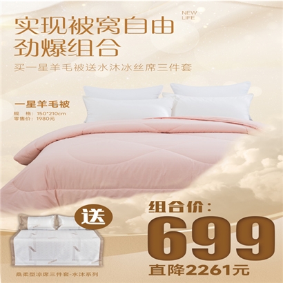 纯新羊毛被送水沐冰丝席三件套