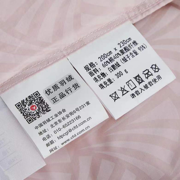 面料:60%棉40%聚酯纤维 填充物:95%白鹅绒