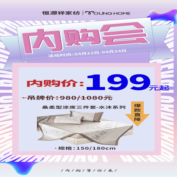 >>恒源祥水沐桑柔型凉席三件套