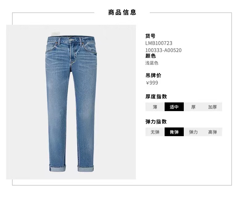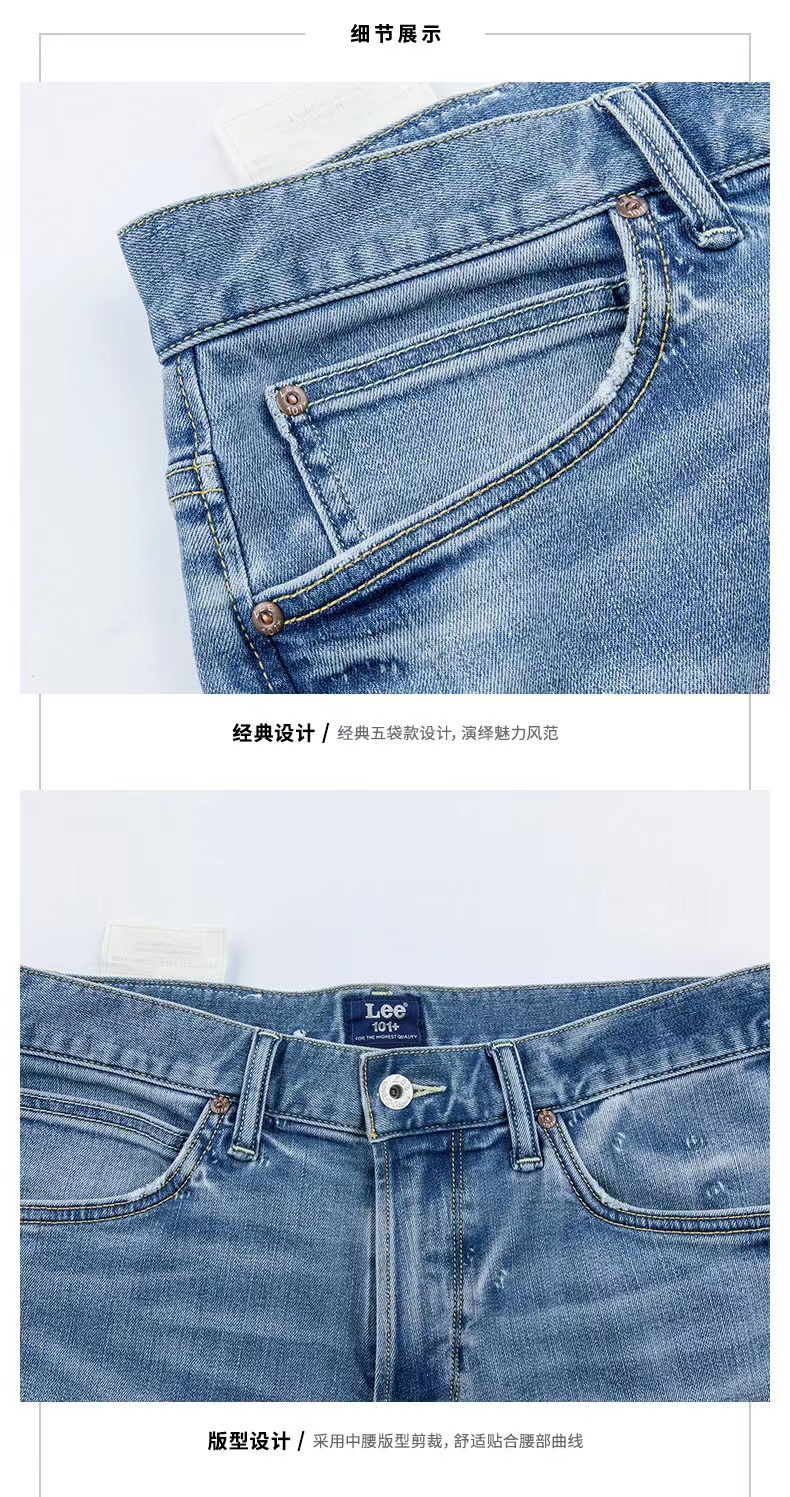 >>Lee22春夏新品723修身直脚浅蓝男牛仔裤LMB100723100333-A00520