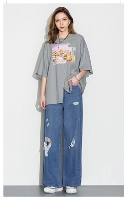 >>Lee2022春夏新品101+中蓝色女牛仔阔腿裤