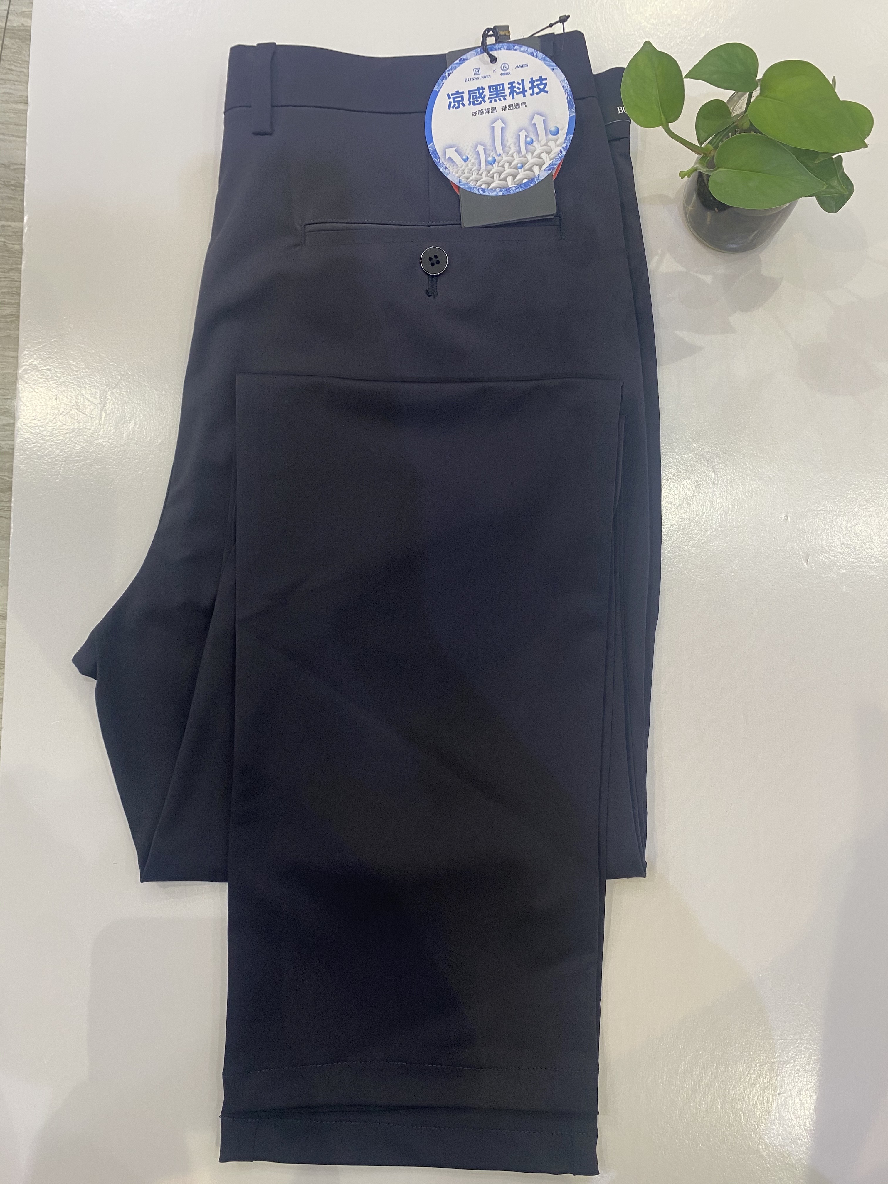 这是一款冷黑科技新型面料,触感凉爽,不吸热能折射紫外线,面料富有弹性,穿着舒适