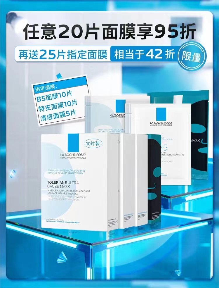 >>理肤泉B5多效保湿修复面膜*4盒(买20享25)
