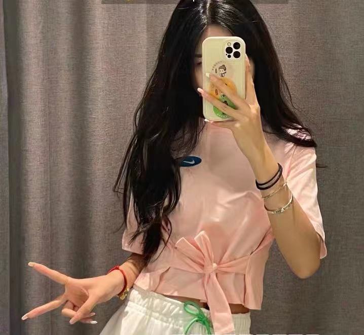 >>耐克Nike 女子夏季新款短款高腰露脐系带休闲短袖T恤