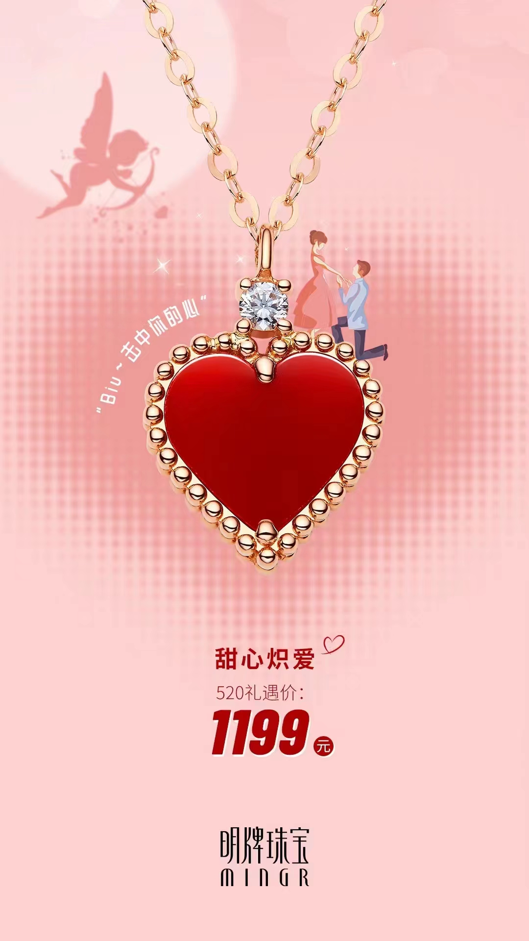 520为爱出击!芳心攻略来啦 爆款#明牌珠宝甜心炽爱项链 心形红玛瑙大胆表露💯满分爱意 礼遇价1199元,送她难忘心动