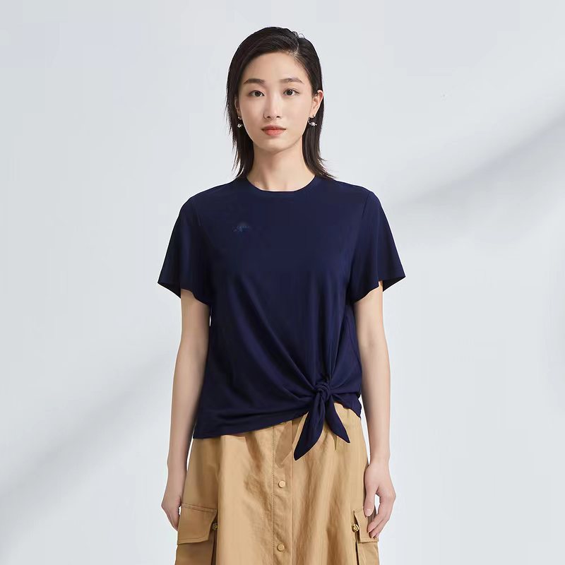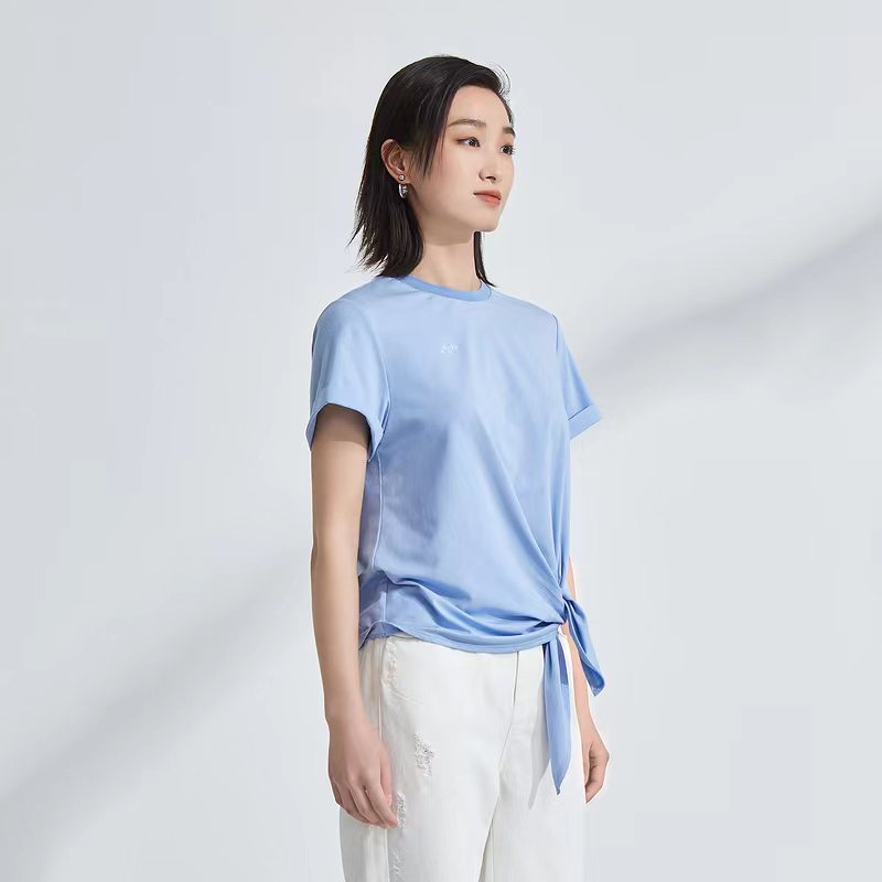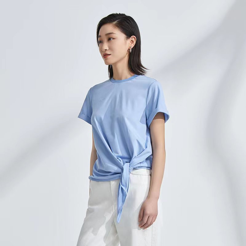>>OTT服饰OTT2021夏圆领系带打结T恤