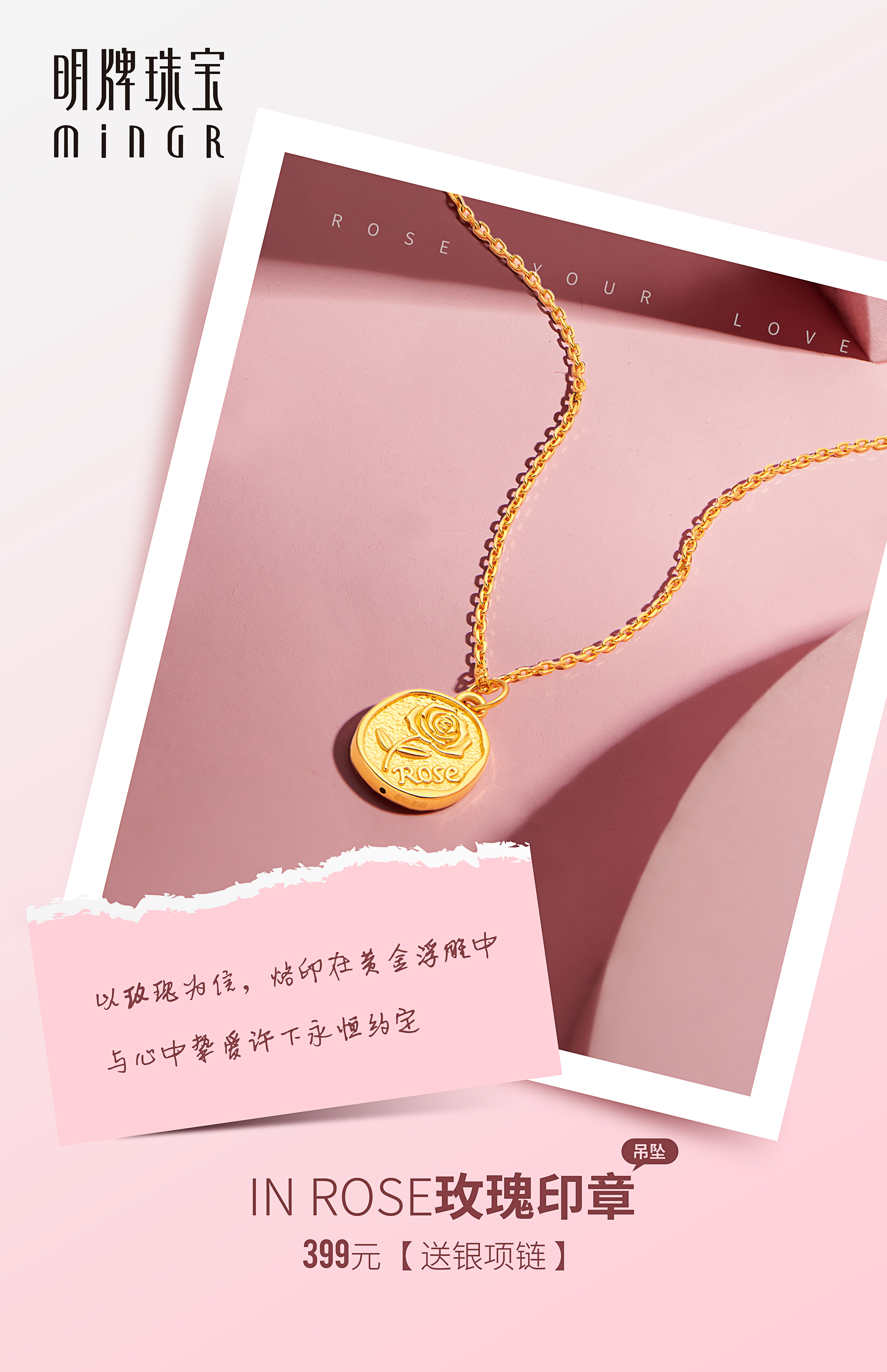 一朵无可替代的玫瑰 一生永不磨灭的爱意 #明牌珠宝 玫瑰印章吊坠 爆款特价¥399,将不朽之爱带给TA~