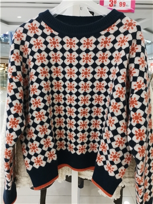 >>璞秀2021冬反季四叶花提花套头毛衫