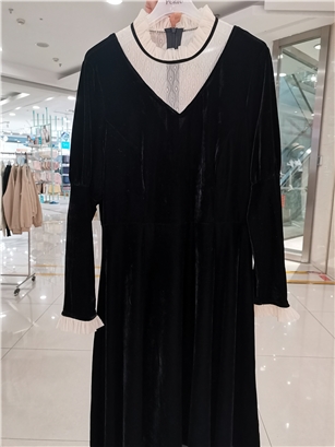 >>璞秀2021冬反季天鹅绒蕾丝拼接伞摆连衣裙