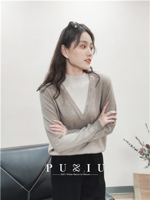 >>璞秀2021冬反季貂绒混纺双色拼接毛衫