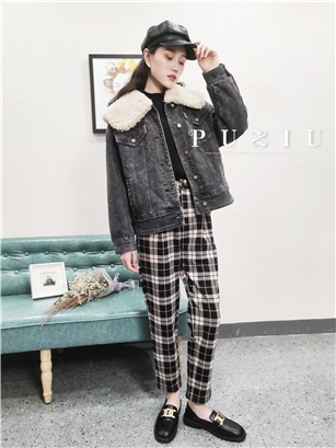 >>璞秀2021冬反季泰迪绒翻领环保兔毛内胆牛仔外套