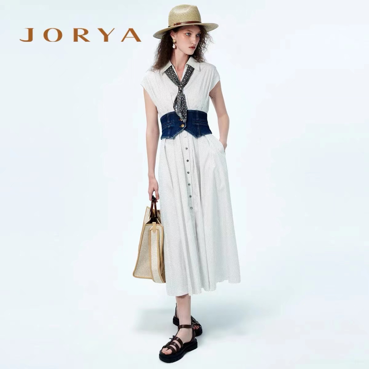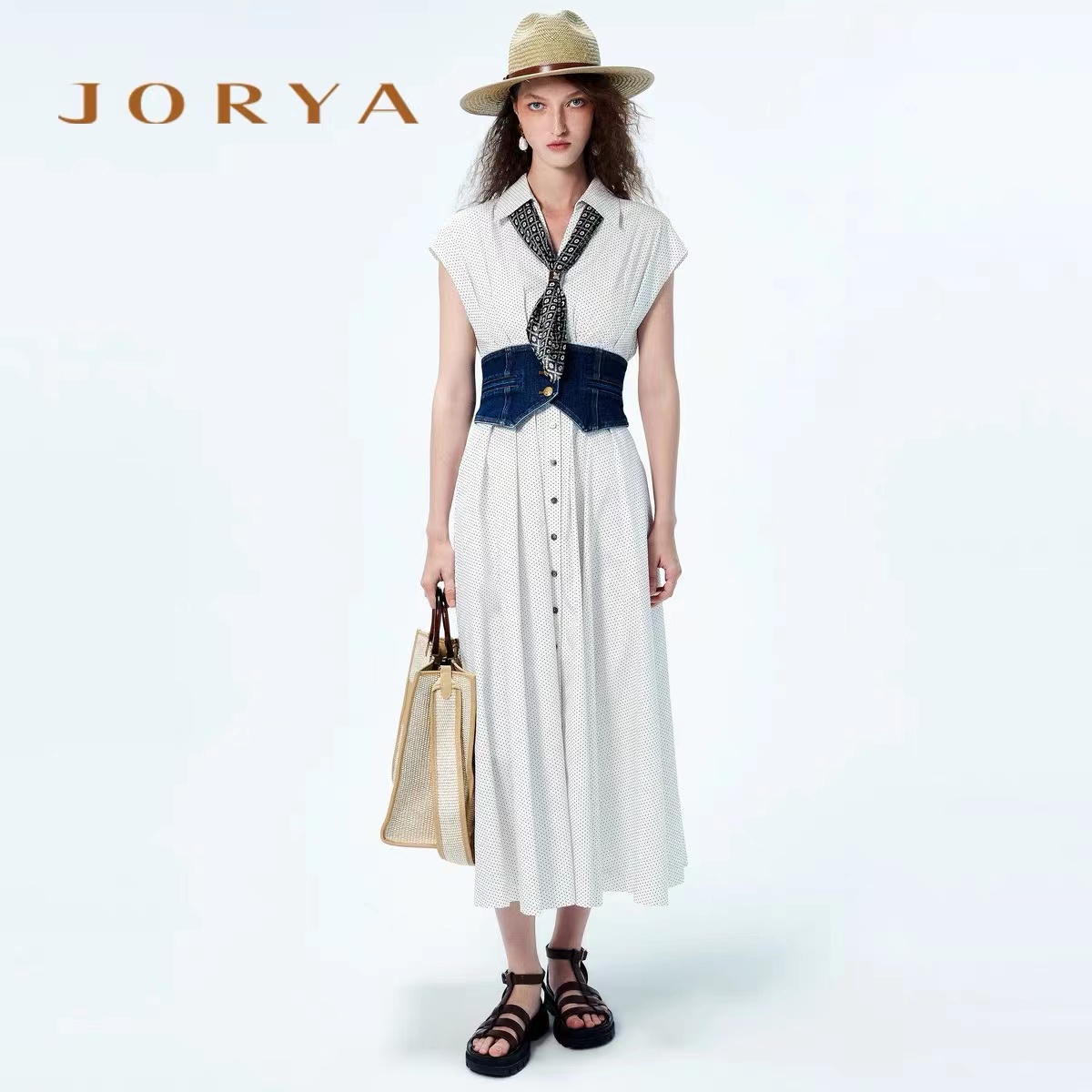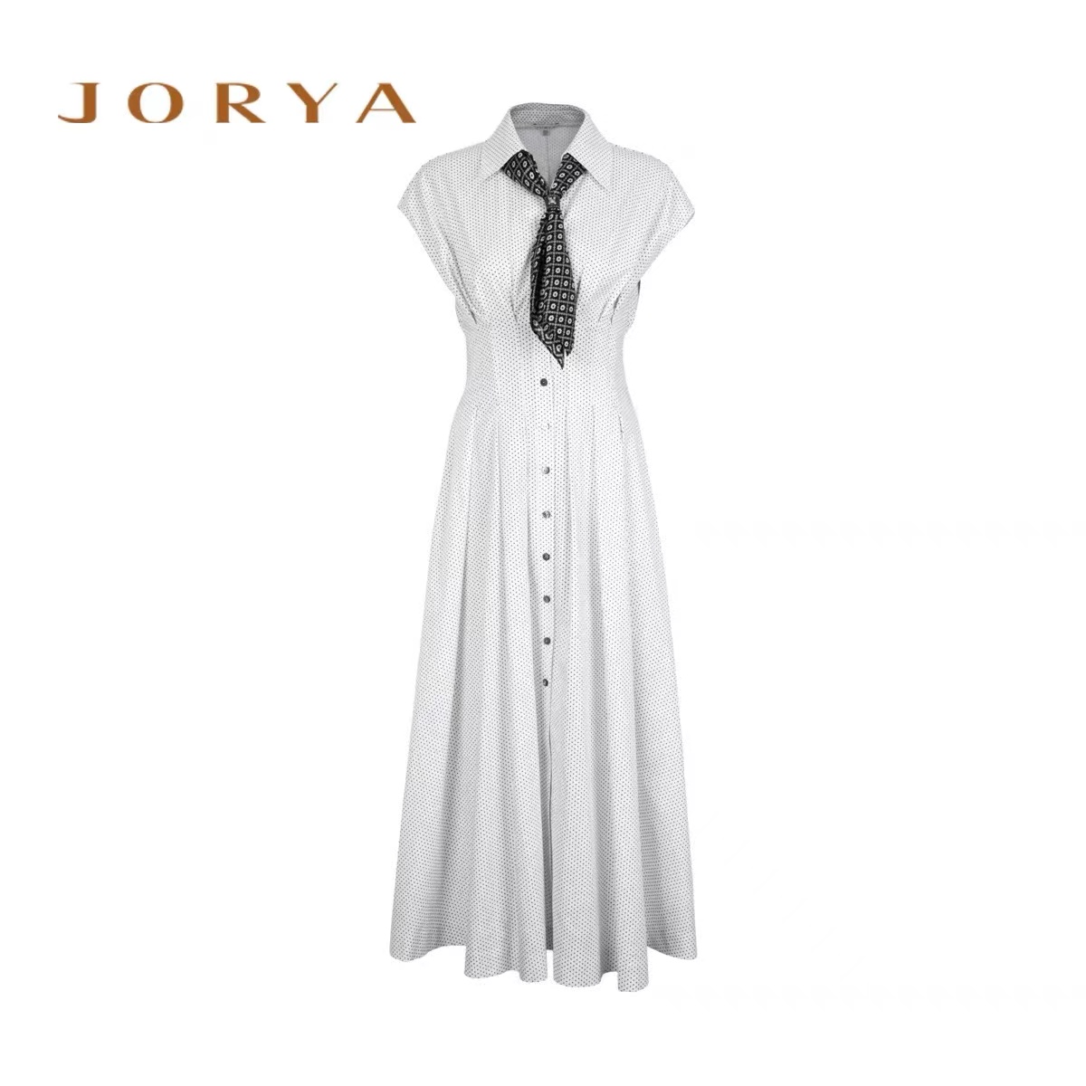 JORYA2022春季新款领带收腰波点长款连衣裙